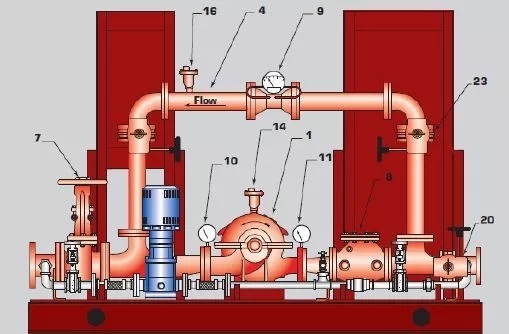 單臺(tái)消防水泵的流量不大于 20L/s、設(shè)計(jì)工作壓力不大于 0.50MPa 時(shí),泵組應(yīng)預(yù)留 測(cè)量用流量計(jì)和壓力計(jì)接口,其他泵組宜設(shè)置泵組流量和壓力測(cè)試裝置。